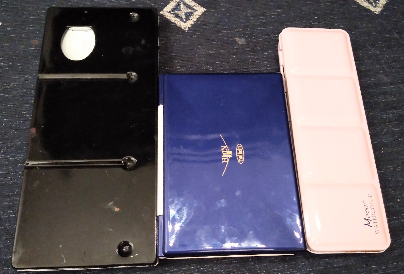 本来はホルベインのパンカラーを入れるためのものでしょうが、ペイトは別メーカーの絵の具を詰め込みまくってます(ごめん)。