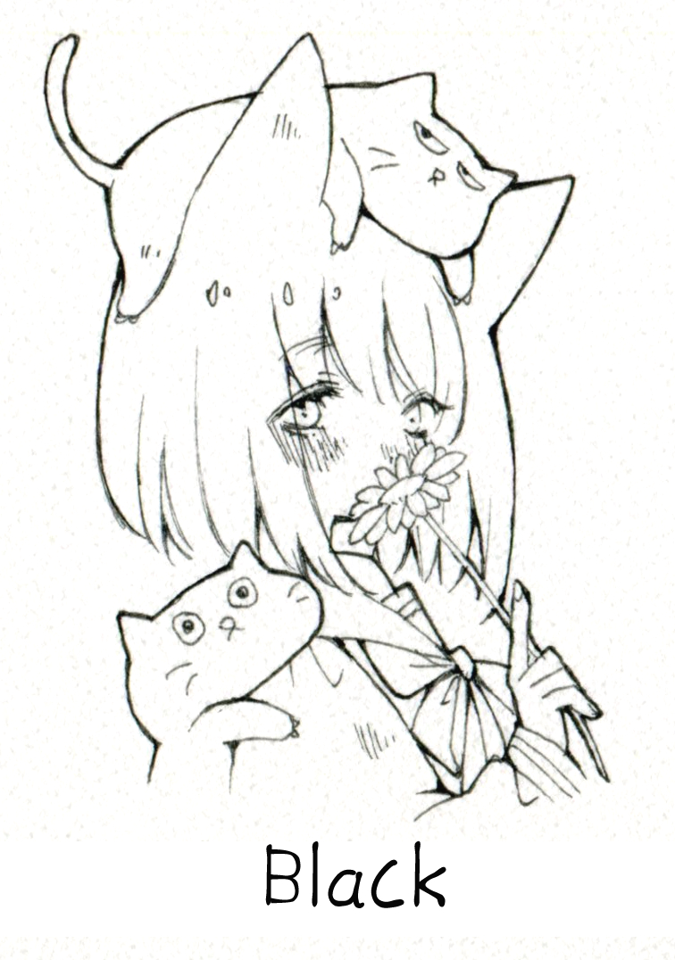 線の主張がかなり激しいので、カラーのイラストに使う場合は、かなりハッキリした塗り方をしないと線の重さに負けちゃうかも^^;