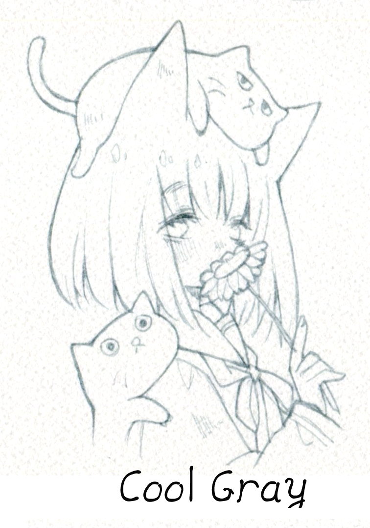 この絵は多分主線をウォームグレーで描いたと思うんですが、自身がないので間違ってたらゴメンナサイ。